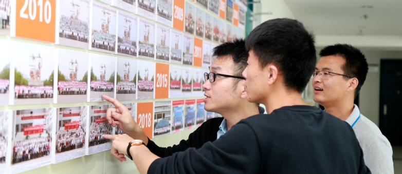 公司还精心制作了“员工墙”,收集了历年来广大员工的毕业合影,65年的时间轴上展现着一代又一代化院人的青春和记忆,参观的员工们认真地观看着照片,脸上洋溢着幸福的笑容。