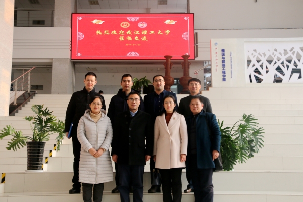 1月3日,武汉理工大学党委研究生工作部部长谢中清一行3人来公司调研交流,公司党委研究生工作部部长吕宏凌、党委研究生工作部副部长于华帅、研究生院招生办季林海、理公司党委副书记李宝玺、公司党委副书记张程等人在工科楼D座会议室与来宾座谈。