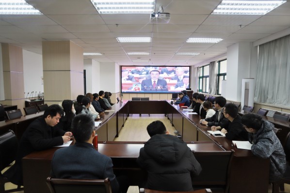 XCSport师生党员在工科D345会议室集中观看李克强总理做政府工作报告