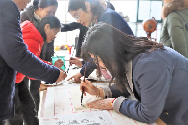 在杨老师的指导下,公司女老师们也纷纷提笔,挥毫泼墨,一幅幅散发着文韵墨香的作品引人入胜,女老师们一边认真地进行现场创作,一边对运笔、章法、落款、印章等技术进行互相点评、交流探讨,在一片欢声笑语中共同度过了一个欢乐、祥和、有意义的“三八”妇女节。