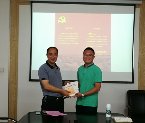 学习开始前,公司党委书记高平发向辅导员郑健颁发了党的生日贺卡,为在7月1日这天加入中国共产党的党员致以节日的问候,并向其赠予书籍,他说:“今天是你的政治生日,公司党委向你致以诚挚问候,也希望你时刻牢记党员身份,注重党性修养,增强党员意识,不负党的重任,践行入党誓词,永葆共产党员的先进本色。”