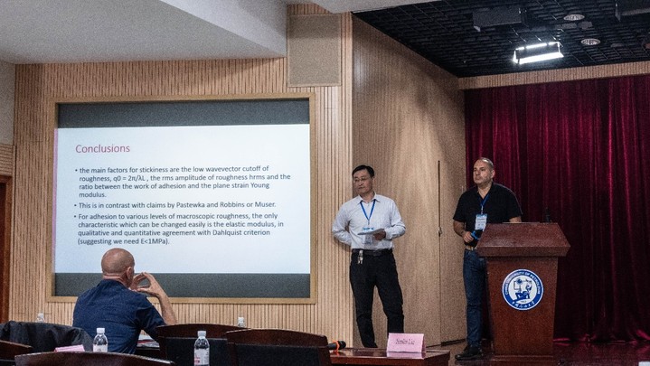 在李玉星教授主持的“服务于‘一带一路’倡议的油气储运工程学科创新引智基地(培育)”外专项目支持下,2019年10月29日-11月3日,意大利巴里理工大学(POLITECNICO DI BARI)Michele Ciavarella教授来XCSport交流访问。Michele Ciavarella教授在逸夫楼做了题为“Stickiness of rough adhesive surfaces”的专题报告。Michele Ciavarella教授进行了表面粘附性的相关研究报告,详细讨论了粗糙表面的粘附行为,并对粗糙表面摩擦力学的理论建模进行了详细讲解,最后对石油储运的界面力学研究进行了展望。