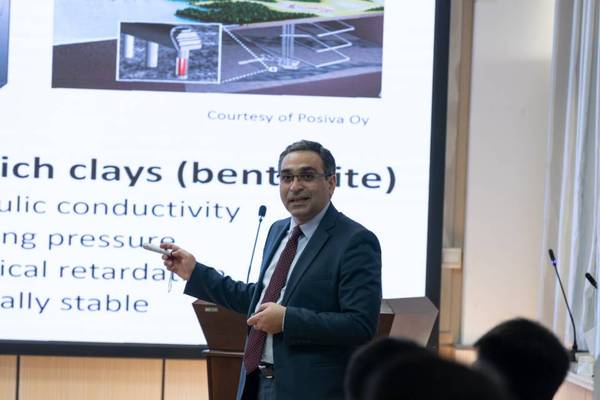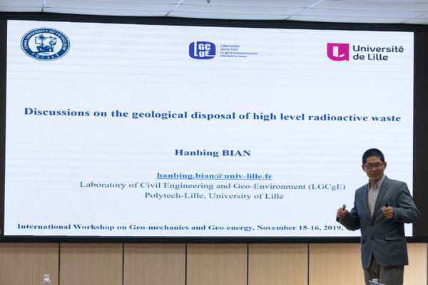 会议由土木工程系杨文东副教授主持。会上,英国曼彻斯特大学Majid Sedighi副教授对地下压实粘土缓冲区中的THCM耦合过程进行了分析。法国里尔大学卞汉兵副教授对高放废物地下埋存的设计、监测与评估进行了探讨。韩国建设技术研究院(KICT)研究员庄丽,以花岗岩的循环水力压裂为切入点,论述了减轻诱发地震活动性概念的实验室规模证明。英国PSE离散元软件公司顾问王利戈博士通过颗粒破碎和岩石切割机理的DEM建模进行了基于相场法的裂缝扩展模拟。英国曼彻斯特大学Mojgan Hadi Mosleh助理教授提出解决地下能源活动对环境影响的创新方案。公司刘建林教授基于分子动力学分析超临界二氧化碳在含水盲端孔隙中的驱油问题。石油工程公司杨永飞副教授从数字岩石物理学角度,对地球能源发展的先进测试和分析技术进行论述。山东大学段抗教授对水力压裂的离散元数值计算进行了介绍。石油工程公司黄朝琴副教授报告了深部油藏热-水-力耦合多尺度数值模拟方法。山东科技大学王春光副教授论述了在多物理场条件下的气煤系统的相互作用。