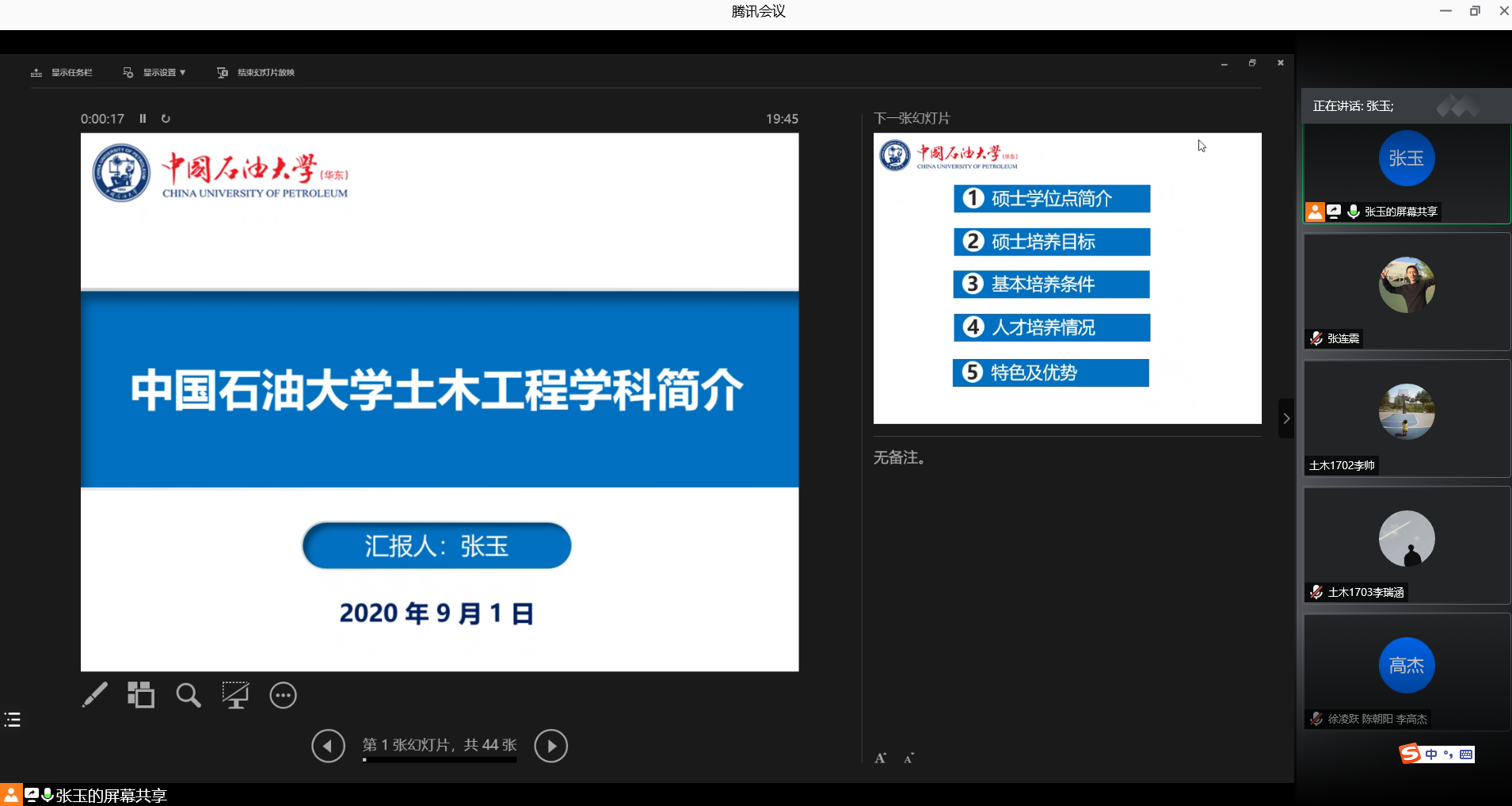 为了让更多员工了解土木工程系研究生教育特色和办学优势,熟悉研究生招生政策、人才选拔和培养条件,更好地为员工提供研究生招生咨询服务,9月1日,在公司的指引下,土木工程系结合当前疫情防控形势及要求,通过腾讯会议举办了2021年研究生招生线上宣讲会。参加会议的有土木工程系教师张玉、李静、杨文东、黄思凝、张连震,在读保研研究生等,宣讲会由张玉老师主持。