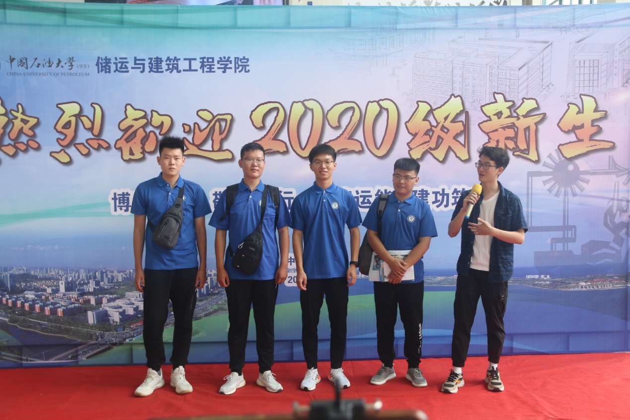从两个入校校门开始,公司为每名新生配备了一名或多名高年级员工志愿者持公司名牌陪同新生前往公司一卡通领取摊位,同时向新生介绍沿途石大地标、解答新生问题等。