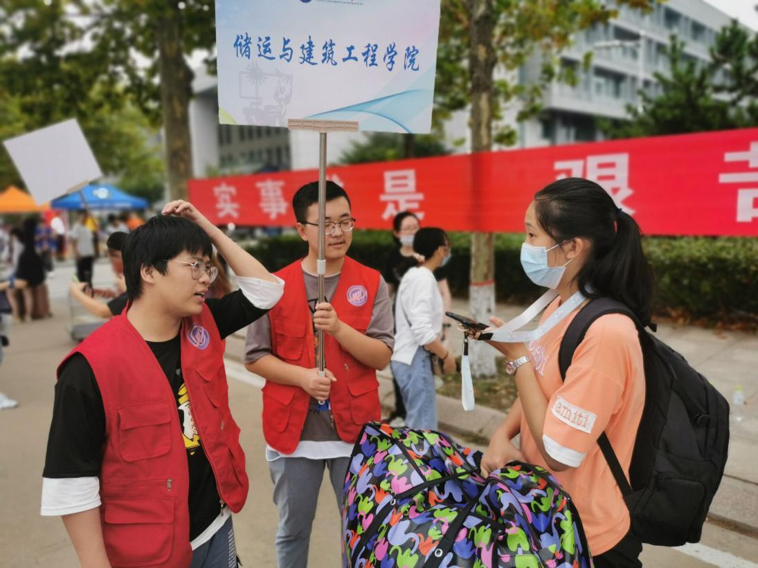 (志愿者为新生指路 张书启摄)