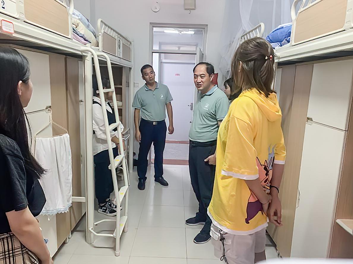 (高平发书记和张程副书记进宿舍看望新生)