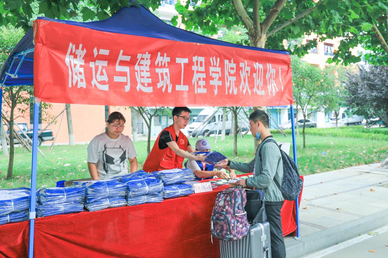 (志愿者为新生发放文化衫 徐子棋摄)