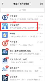 1. 打开 “XC体育微信企业号”,搜索“会议室预约”(仅对公司教职工开放,员工无法预约)。