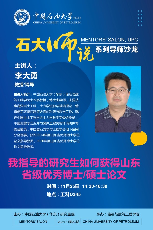 【“石大师说”系列导师沙龙】我指导的研究生如何获得山东省级优秀博士/硕士论文