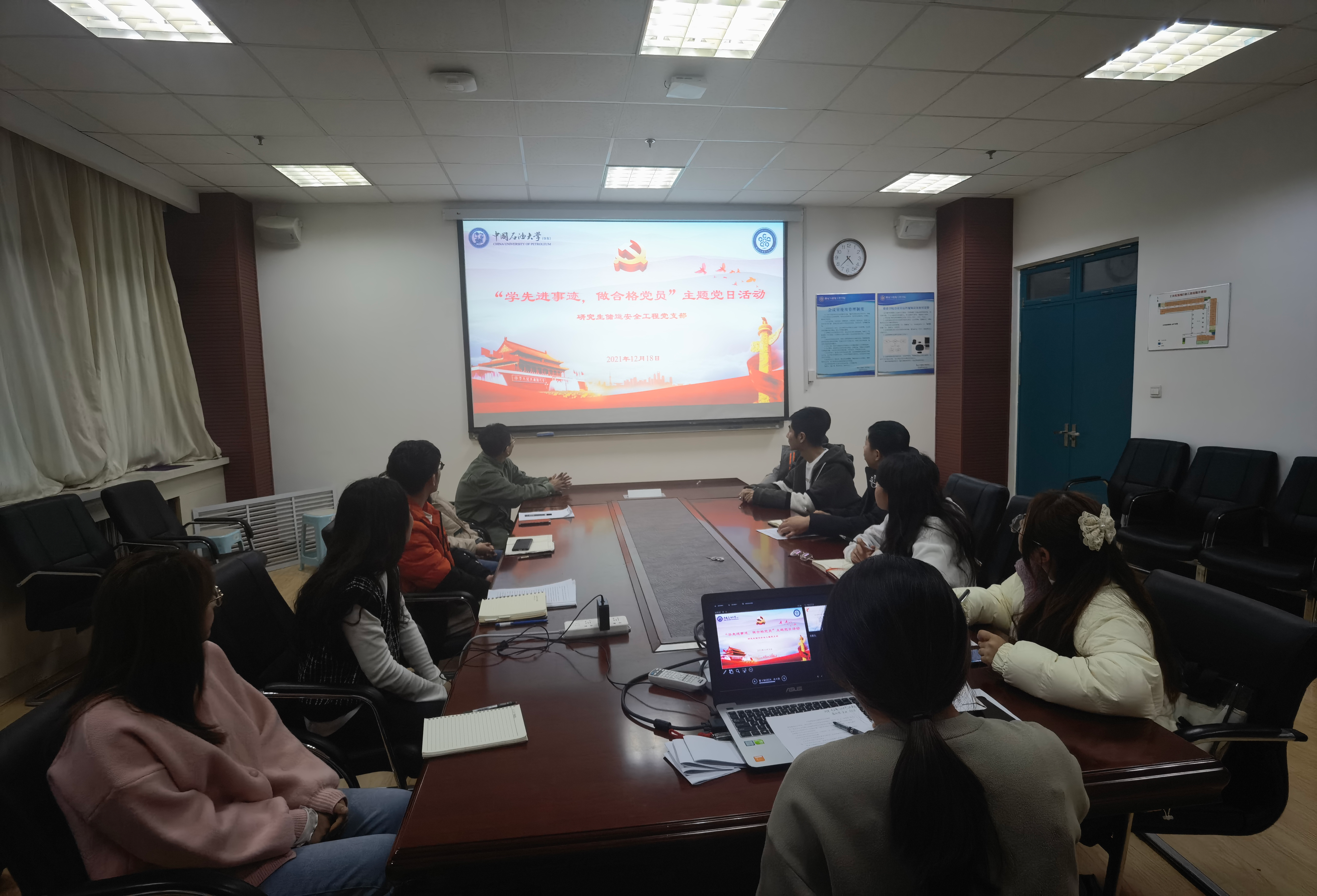 12月18日,研究生储运安全工程党支部于工科D座341室开展“学先进事迹,做合格党员”主题党日活动,目的是引导党员学习先进事迹,增强党性,发挥先锋模范带头作用,党支部书记佟云霞主持本次活动。