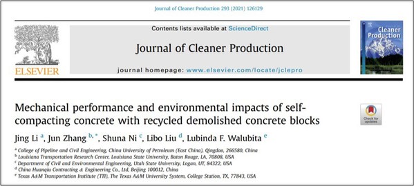 近日,公司土木工程系李静教授团队在土木工程再生混凝土领域取得新进展。相关成果《Mechanical performance and environmental impacts of self-compacting concrete with recycled demolished concrete blocks》(再生大骨料自密实混凝土的力学性能及环境影响)发表在国际著名学术期刊《Journal of Cleaner Production》上,该期刊2021年影响因子为9.297,在中科院JCR期刊分区中为1区TOP期刊,期刊收录的科研论文在国际上具有广泛的影响力。该成果李静教授为第一作者,XC体育为第一署名单位。本研究得到青岛市科技专项以及东营市科技计划项目联合资助。