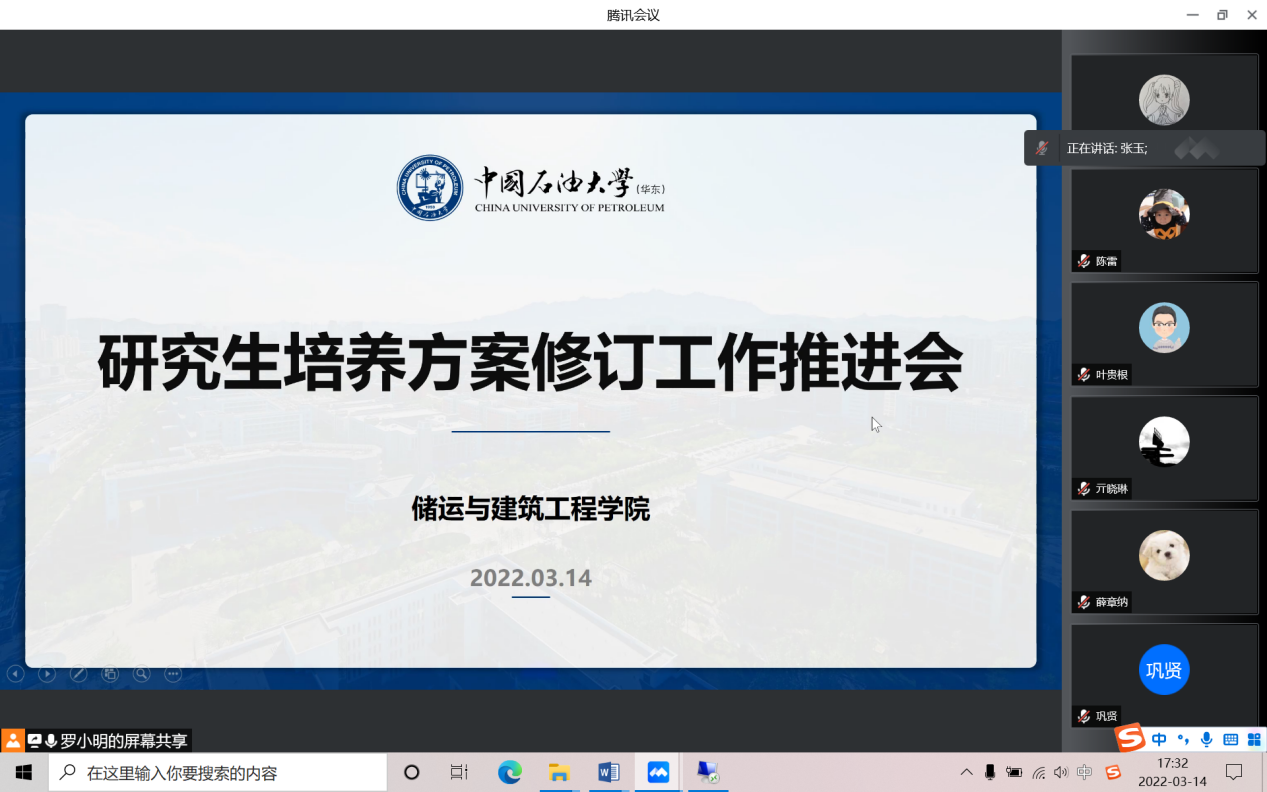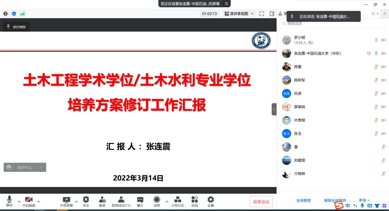 储运、力学和土木三个学位点充分重视此次培养方案修订工作,遵照公司学期初制定的培养方案修订进度安排,通过广泛调研、合理规划、充分讨论修订各学位点的培养方案。各研究生副主任分别从培养方案修订依据、进展情况、存在问题和解决方案四个方面进行工作汇报。随后,与会老师就培养方案中的研究方向、课程设置、成果要求等关键问题进行深入探讨。