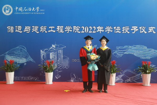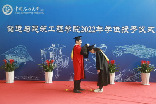 伴随音乐响起,学位授予仪式在庄重的气氛中正式开始。全体毕业生身着学位服,按照研究生、本科生的顺序依次上前,公司经理、博士生导师刘刚教授为每一位毕业生拨穗正冠,颁发学位证书并合影留念。仪式最后,毕业生代表孔冉为刘刚经理献上鲜花并表示感谢。