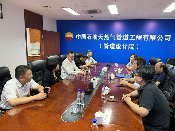 随后,公司一行到访中国石油天然气管道工程有限公司,与总经理、党委副书记王学军、副总经理、全国工程勘察设计大师张文伟等人进行了座谈交流。会上,王学军对公司一行表示热烈欢迎,公司特别肯定了公司毕业生的工作素养和专业技术能力,介绍了公司招聘计划和相关待遇,希望公司能输出更多优秀毕业生到企业发展。刘刚介绍了公司、学科的建设发展情况。
