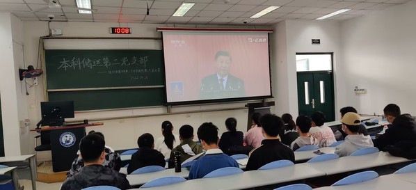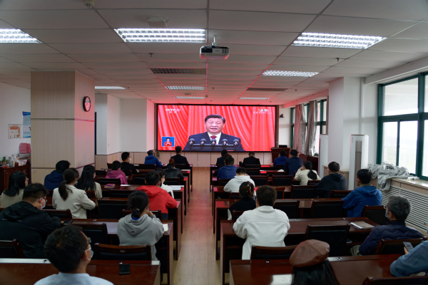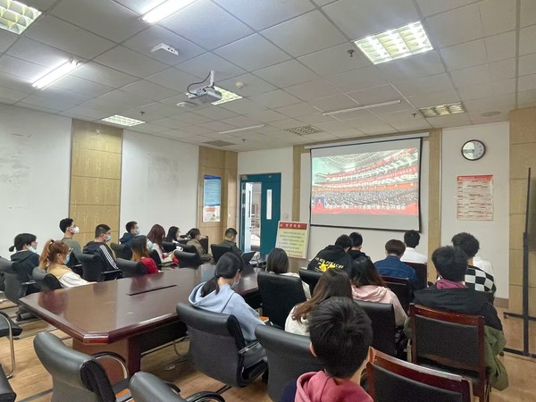 XCSport师生代表在工科D345会议室集中收看党的二十大直播 钟应奇摄
