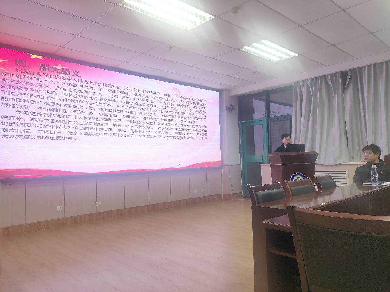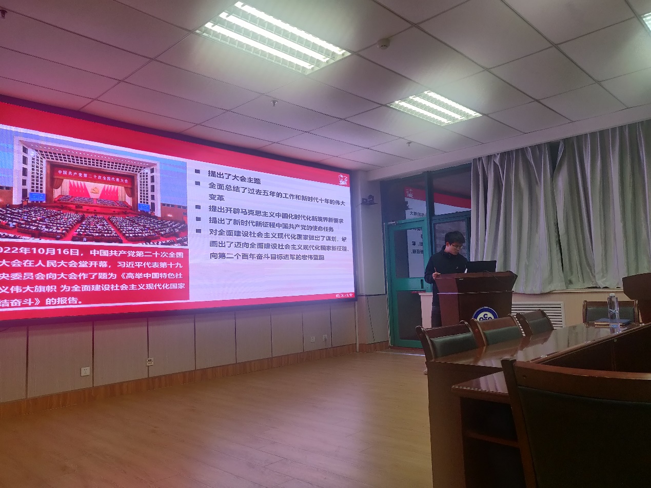 为了学习宣传贯彻党的二十大精神,传递石大声音,研究生建筑与土木工程第一团支部联合研究生多相流与分离团支部于2022年11月29日在工科楼D345举办了“青春献礼二十大”团日活动。会议特邀“星火”宣讲团成员冉井友同志与董晖同志分享二十大学习心得。会议深刻理解学习了二十大报告的重大理论创新,热烈讨论学习了过去五年的工作和新时代十年的伟大变革,最后董晖同志对社会热点及进行了解读与分析。
