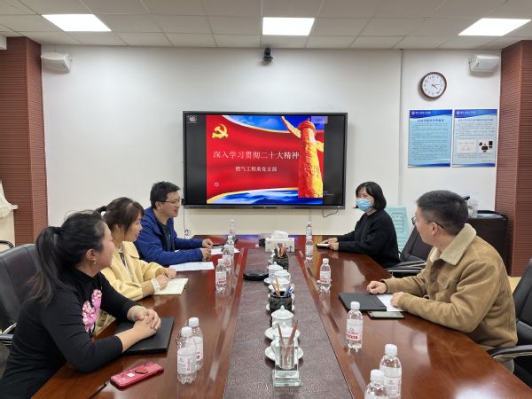 11月25日,燃气工程系党支部在D341会议室开展学习宣传贯彻党的二十大精神主题党日,党支部书记徐春雯主持活动,燃气工程系党员教师参加。