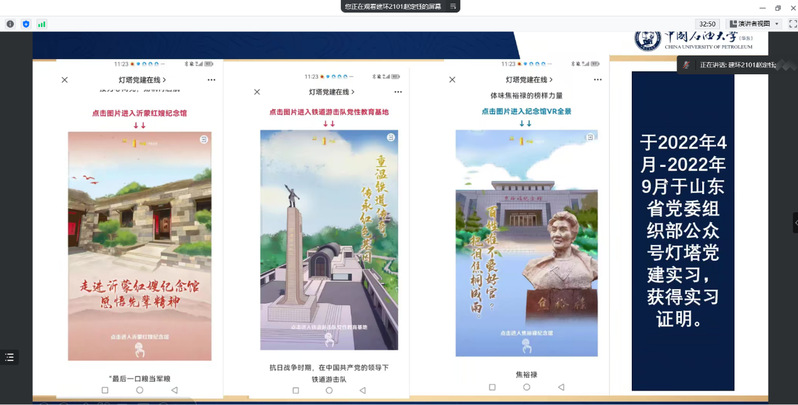 本次中期考核采用了线上PPT汇报的方式,同学们就自己所培育的方向在前期工作概述、经典成果展示、工作经验总结、未来工作规划等四个方面进行了详细的答辩,在此次答辩中同学们回顾了自己前期所做的工作,同时也对自己的培育目标有了更加坚定的认识,大家在汇报中提到先锋成员应结合自身特色和优势,有针对性设计成长方案和做出成长计划,以岗位实践锻炼为主要的方式,着力提升自己的思想政治素养、积极进取精神、团队协作意识、创新实践能力以及志愿服务水平等,在各自的专业班级、公司、公司以及各类员工组织中发挥先锋引领作用,以“讲理想,比奉献”作为原则,以“先动带动后动”为方式积极为公司公司做出自己的贡献。