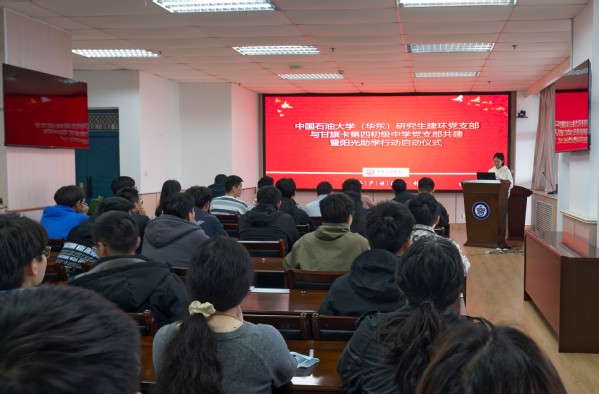 启动仪式结束后,研究生建环党支部面向甘旗卡第四初级中学的同学们开展了入团启蒙教育讲座。研究生韩金洋通过视频回顾了中国共青团的发展历史,介绍了团的基础知识,详细讲述了团旗、团徽、团歌,入团的程序,团员的义务等。在随后的交流环节中,甘旗卡第四初级中学员工积极回答问题,表达了自己对于团组织、团员的认识和对团组织的向往。