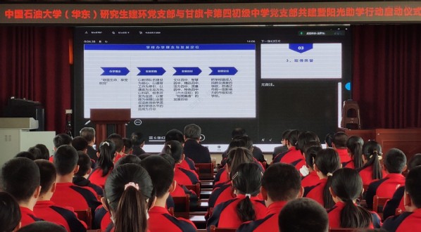 周辉指出,自己在内蒙工作期间,对甘旗卡第四初级中学良好的校风和踏实务实的工作作风印象深刻,周辉表示,希望研究生建环党支部充分发挥研究生的主观能动性,主动推动工作开展,线上工作与线下工作结合好;公司对此次助学活动大力支持,会在政策、人员、资金等方面提供帮助。周辉向甘旗卡第四初级中学发出邀请,欢迎师生代表来石大参观学习交流。