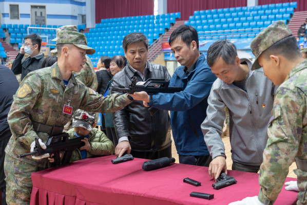在校区引导员的指引下,石大一行先后到田径场观看了旗语、军体拳、刺杀操演练,学员们整齐划一的动作、气势如虹的口号让观众深受震撼,观看了学员十一大队的队列和内务整理演示后,进入学员宿舍参观,干净、整齐、温馨的宿舍充分展现了海军部队优良的作风和严格的纪律,在文体馆观看了枪械展示,并逐次实操枪械,体验模拟射击。