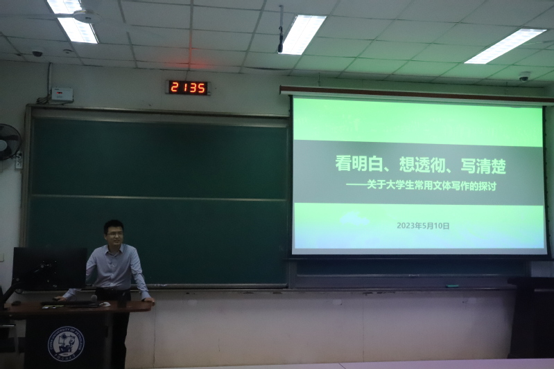 陈飞做了以《看明白、想透彻、写清楚》的主题分享,从琐碎的微信聊天日常引入,介绍了不同情景下的聊天用语特点,并通过提问在场同学的方式加强交流效果。在讲解过程中,陈飞引经据典,以通俗易懂的方式向同学们介绍了文字材料的重要功能、文字工作的基本要求、常用文体的一般规则、文字写作的常见误区四方面的内容,对老员工常用文体写作进行了详细的指导。