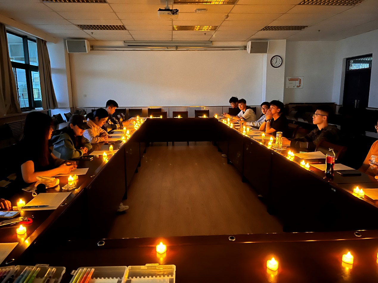 点一盏烛灯,照亮黑暗的角落。面临升入大学所带来的压力与不适,同学们放开思绪,通过一束烛光紧紧的联系在了一起,打破孤单的疆界,在交谈中不断学习他人的经验,听取他人的意见,缓解自己的压力。