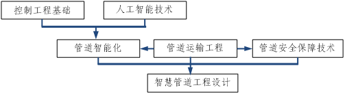 本专业核心课程有6门,分别是控制工程基础,人工智能技术,管道运输工程,管道安全保障技术,管道智能化,智慧管道工程设计。控制工程基础和人工智能技术是进行智慧管道工程设计和管理的基础课,由自动化专业的老师主讲,管道运输工程,管道安全保障技术,管道智能化专业性比较强,由油气储运工程专业老师主讲。智慧管道工程设计是课程设计类的实践课程,注重员工综合设计能力的培养。除了人工智能技术之外,其余五门课程均是新课程,体现了“智慧+管道”复合型人才的培养理念和“工艺与工程并重、强化信息与控制”的课程体系。课程拓扑关系如图1所示。