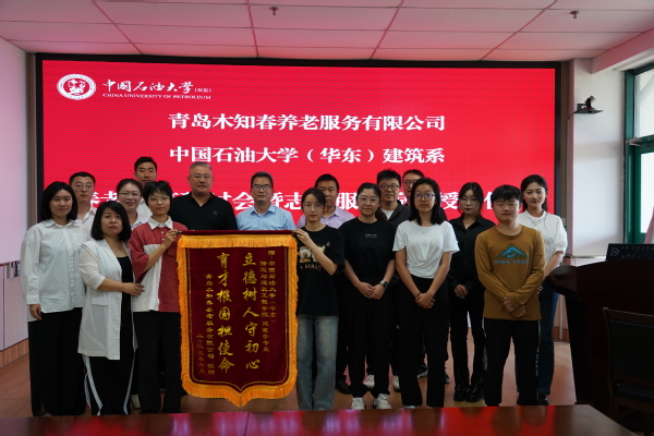 青岛木知春养老服务有限公司向建筑系师生授予锦旗 肖朋磊摄