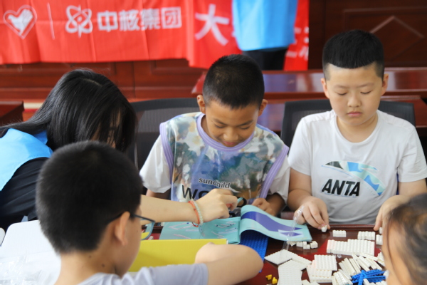 宣讲团与孩子们共同完成了“华龙一号”核电站模型积木的搭建。大家齐心协力,通过积木搭建这一形式,还原了这项伟大的工程。通过搭建活动,宣讲团与孩子们切身体会到建设这一奇迹工程的不易,也深深感受到如今中国核工业的强大。