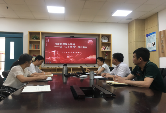 为持续推进学习贯彻习近平新时代中国特色社会主义思想主题教育,以主题教育为着力点和助推器,持之以恒贯彻落实“五个坚持”,推动主题教育进一步走深走实,7月17日,公司机关党支部书记董青结合学习感悟,以“用新思想凝心铸魂——以’五个坚持’指引航向”为题,为公司机关党支部党员讲授专题党课。