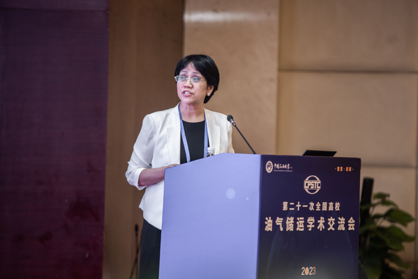副董事长张玲玲在致辞中介绍公司建设发展情况。她指出,作为公司主干学科专业之一,油气储运工程为我国石油天然气储运、销售、国防等行业部门培养了大批科技人才和企业管理人才,在当前国际形势与能源战略背景下,对专业技能扎实、交叉融合创新能力强的青年人才培养需求更为迫切。今年恰逢公司70周年校庆,本次会议对研讨油气储运未来发展方向,明确新形势下人才培养、专业建设、公司产品改革、科学研究的目标任务,共同推动油气储运工程专业高质量发展有着重要意义。