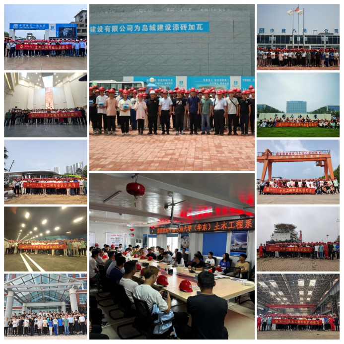 7月21-25日,土木工程系组织2022级土木工程专业的员工前往黄岛区朝阳西路西、薛泰路北住宅项目、中国石油集团海洋工程公司、青岛光大集团大型构件有限公司、XC体育古镇口校区、山东高速青岛公路有限公司胶州湾大桥展厅、中建八局一公司青岛分公司红岛国家篮球、足球公司工程项目、青岛建国工程检测有限公司、公司体育馆、游泳馆、地下车库以及校史馆等项目现场开展专业认知实习工作。