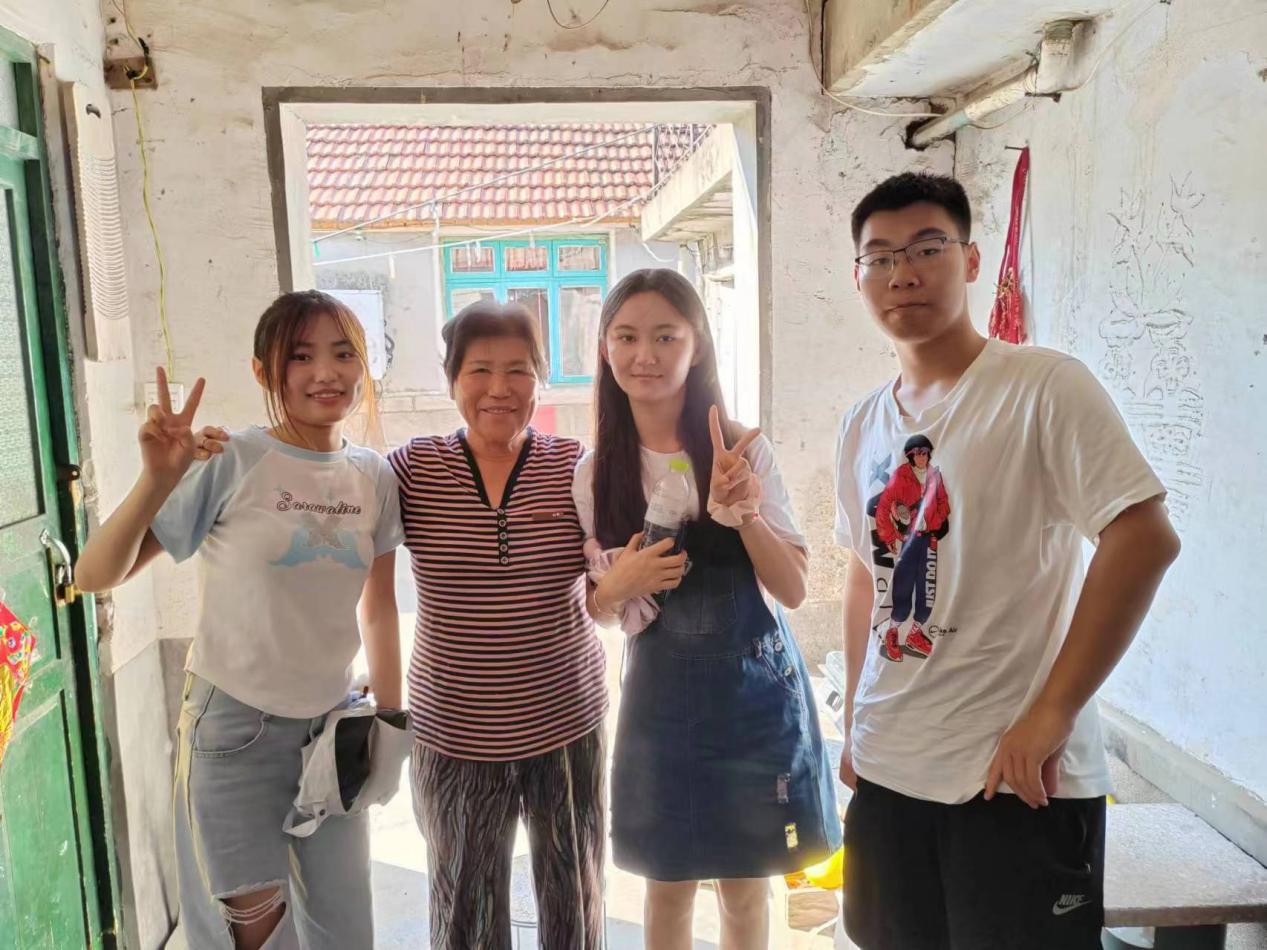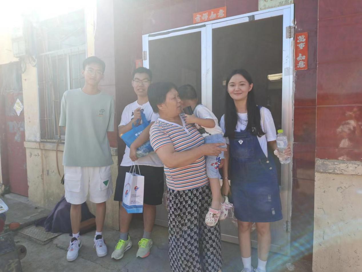 活动伊始,实践队一行人来到宁静、淳朴的台子沟村,携带好购买的米、油、奶等物资,一路上看到酷暑下辛勤劳作的农民、播撒农药的卡车和怡然自乐的黄发垂髫,宛然一幅世外桃源的景象,队员们惊讶之余也在感叹年轻人的流失严重。队员们跟着一位热心的村民走访村庄,逐一敲开老人们的门,带去了问候、关心和礼物。倾听老人们的心事,让他们感受到社会的关怀。同时,队员们真诚地为老人们分享食品安全知识、用电、用火、健康知识,还献上了自己购买的生活物资,这些务实的礼物让老人们的脸上洋溢着幸福的笑容。在队员们的陪伴下,老人们分享了他们的生活经验和孩子们的成长点滴,互相之间建立了深厚的情感纽带。