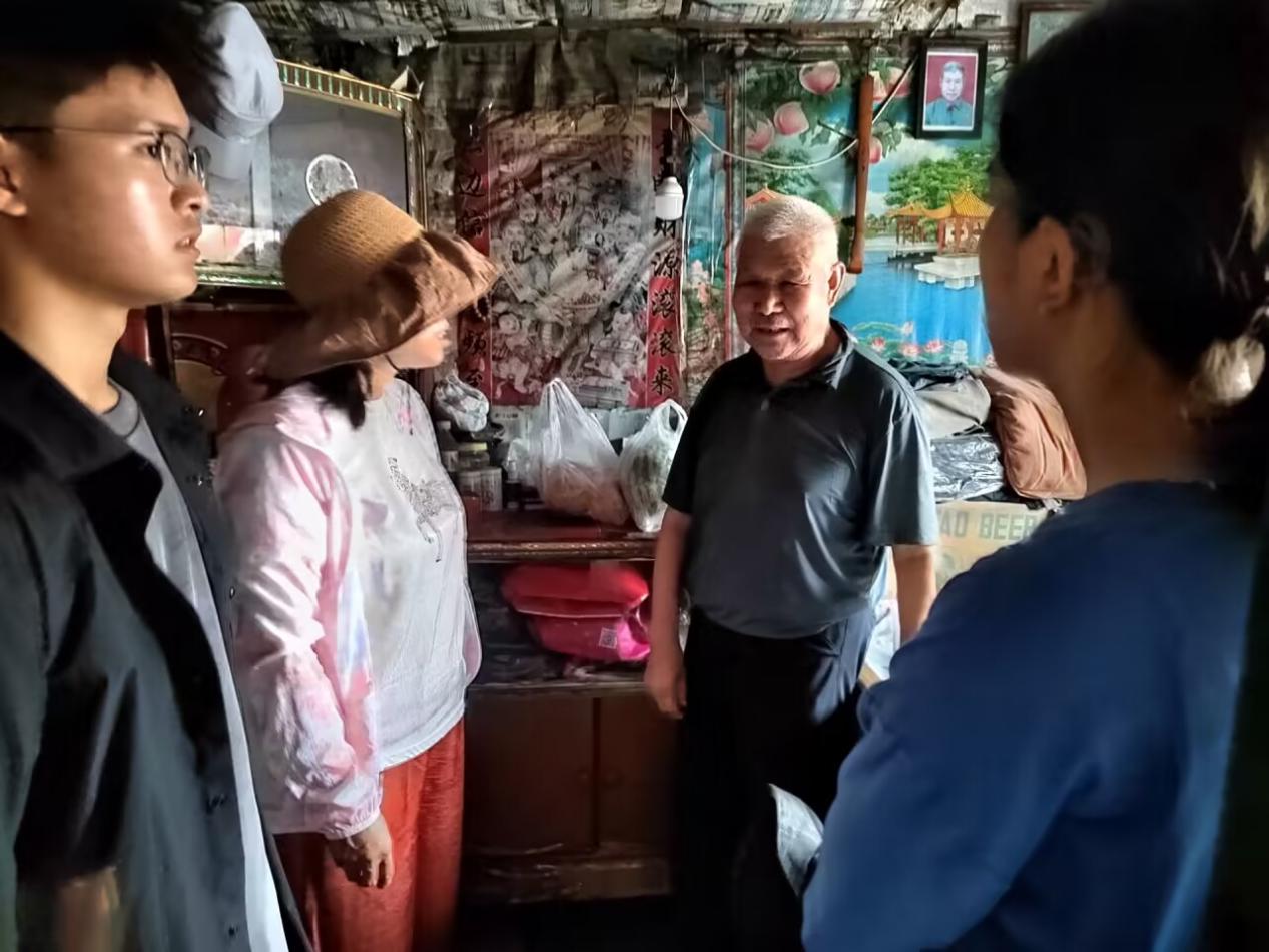 在走访过程中,实践队的成员提前联系了当地村委会负责人莽女士,并在莽女士的带领下,一家一户地拜访,送去自己的一份温暖。在拜访期间,实践队既知道了一对农民夫妇的生活在这几十年内翻天覆地的变化,也看到了残疾老人李老先生对生活的信念与对国家的感激。实践队还了解到了当地的气候与地理位置给村民门带来的诸多生活里的不便,并在后来国家政策的帮助下逐一解决后,村民们生活发生了巨大变化。此外,实践队了解到了一位退伍军人的人生经历与环卫工人最真实的生活状况。