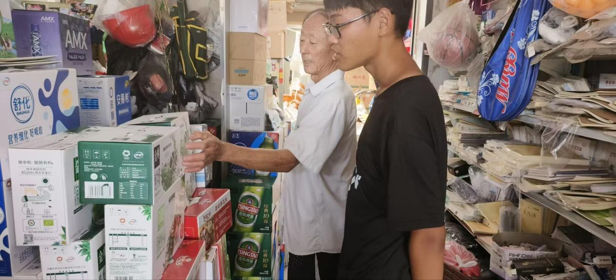 实践队成员为老人采购生活用品 王绍荣摄
