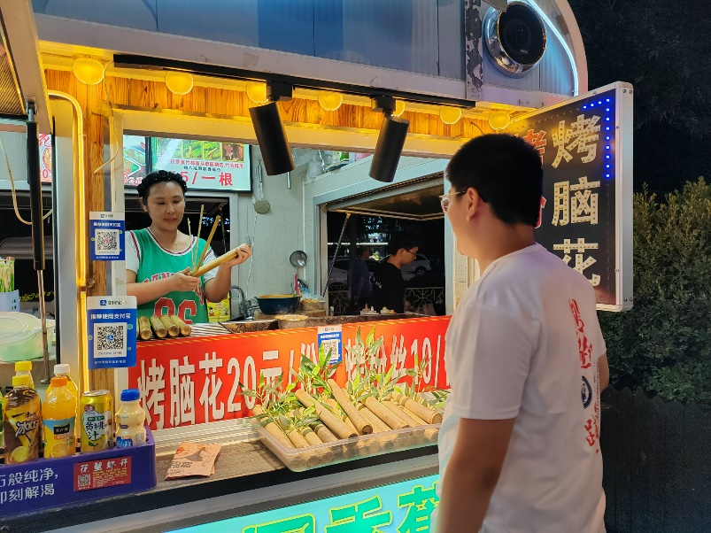 实践队前往的世纪花园社区是淄博城市基层党建的一个“标杆”, 代表着淄博市基层的服务态度和治理水平。首先,实践队进入社区的党群服务中心,聆听工作人员的讲解。据悉,世纪花园社区的党委书记邵涛曾接受过习近平总书记的接见。 邵涛作为社区的党委书记,把社区工作当作自己的事业,把居民当家人,把社区当家建。他自主创建了许多为民服务的工作法,如“天大的小事”“为民服务清单”“周一说事”“万步群众工作法”“周五我值日”“喘息工作法”“周末工作法”等,有力提升了基层治理效能。随后,跟随工作人员的脚步,实践队参观了基层党建展览馆,学习基层社区治理的思想和方法;同邵涛书记进行座谈,在座谈会中,队员们同邵涛书记就基层管理和淄博市现阶段发展情况等问题展开探讨。 最后,实践队前往水晶街对随机选取的五家小吃摊摊主进行采访,其中四家均为今年上半年才开始经营小吃的,并且他们表示,每天的营业额都比较可观。同时,队员们发现水晶街的外地游客居多,且多以年轻人为主,这让水晶街充满商业活力。由此我们可以窥见淄博的热度持续不减的原意之一便是年轻人和外地游客较多,可为城市的文旅发展赋能。