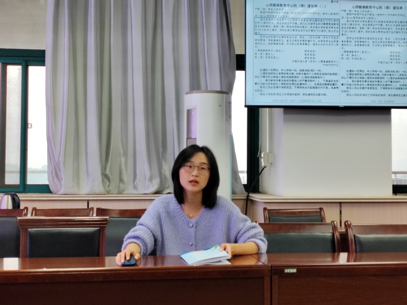 会上,徐铭雪介绍了员工心理问题的识别与应对、心理危机干预处理流程、辅导员谈心谈话以及家校沟通等方面的方法、要求及注意事项,并对新上线的心理健康应用系统的功能和操作进行了培训。系统包含了干预记录、心理测试、访谈预约、心情指数等多种实用功能,对辅导员日常心理健康工作的开展起到了有效的辅助作用。会后,徐铭雪依次与各年级辅导员了解重点关注员工的详细情况,针对存在的问题和工作难点给予了具体的建议。