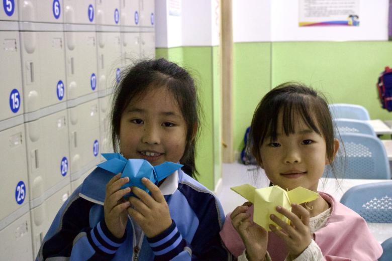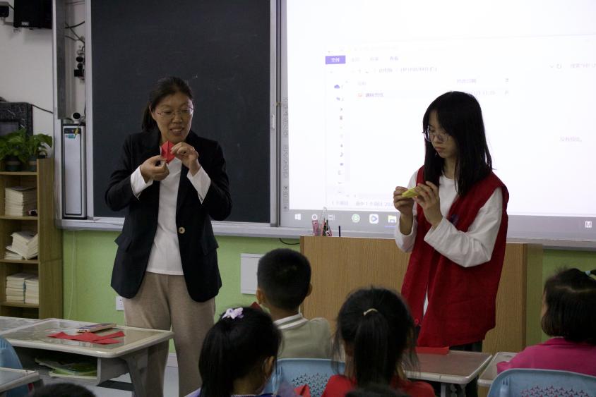 在手工折纸课上,志愿者们向一年级和二年级的小朋友介绍了有关折纸的知识,包括折纸的基本技巧、折纸的用途、中国传统文化的科普、折纸的分类,并用丰富多样的图片与实例向小朋友们展示了折纸文化的魅力,激发了孩子们的兴趣和想象力。