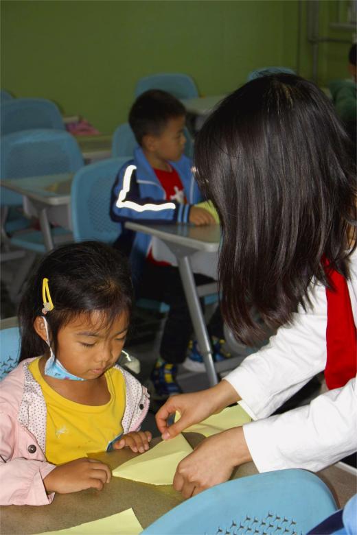 召旭服务队志愿者帮助小朋友折纸 袁新宇摄
