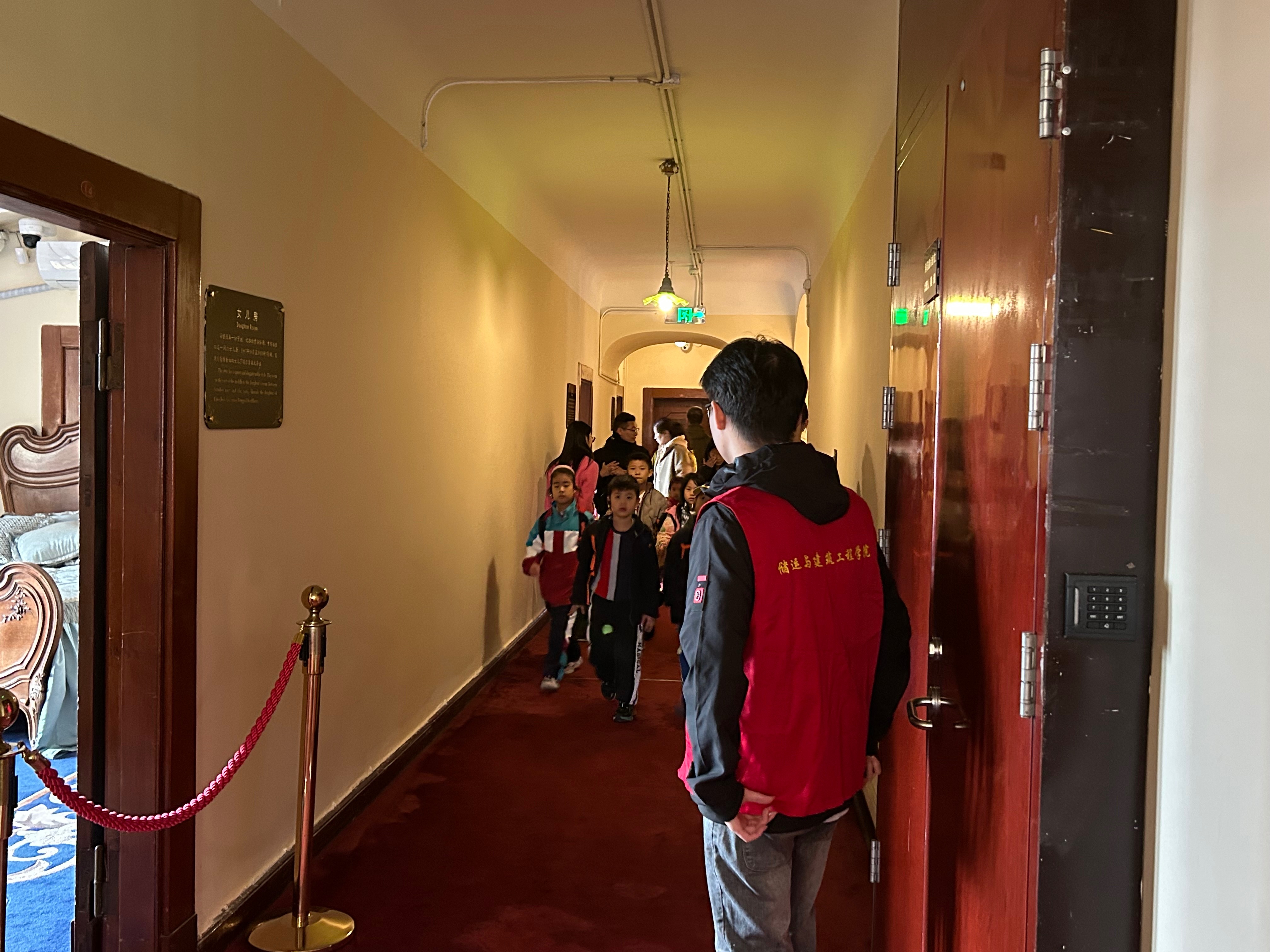 恰逢周六,附近幼儿园的小朋友们进行了一次游学活动。他们在老师与馆内讲解人员的带领下,安静且有序地在博物馆内参观,同时我们的队员也积极协助,确保小朋友们上下楼梯的安全。在队员们认真的服务中,本次志愿者之行也迎来了圆满结束。