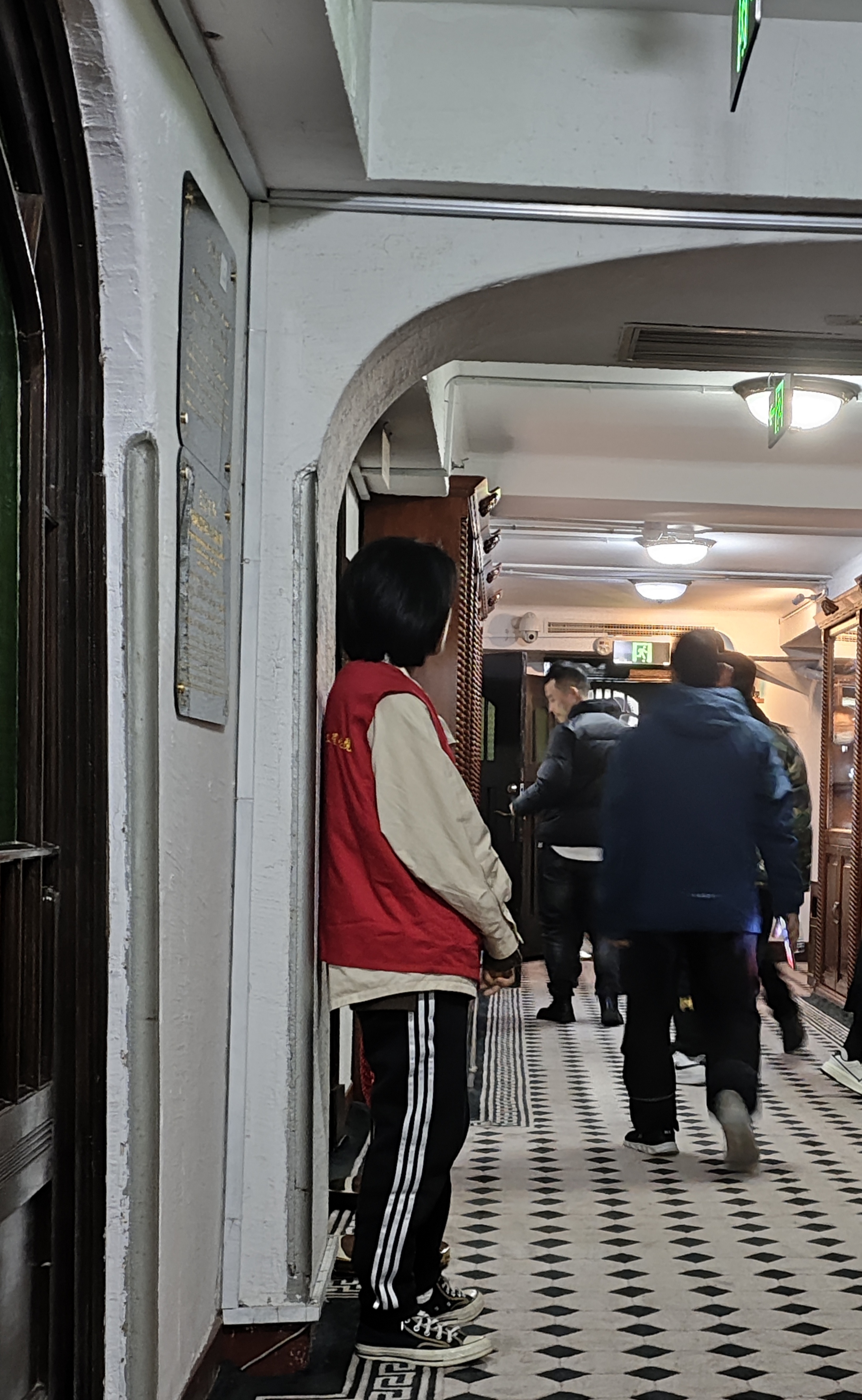 不仅德国总督楼是一幢百年名楼,它的内部还展览了众多历史遗产,让人得以体会到那时的生活方式和艺术风格。志愿队的同学在休息时间也自然被身边的文物和场景吸引,好奇地上前参观。