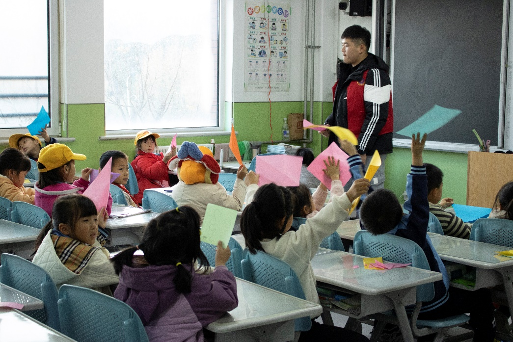 接着,开始折纸鹤的教学,志愿者们从最简单的折叠方法开始,一步一步地教他们如何将一张平面的纸张变成立体的千纸鹤。孩子们认真地听讲,小手灵巧地折叠着纸张。虽然有些孩子折得不太整齐,但他们并不气馁,一遍遍地尝试,直到成功为止。