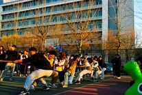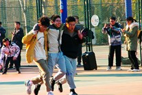 落日西沉,天意渐凉,比赛的热情却依旧不减,志愿者贴心的为同学们准备了红糖姜茶和暖宝宝。与此同时,抢凳子、疯狂毛毛虫等项目接连进行,一些搞笑滑稽的场面时不时引发现场同学阵阵笑声,整个篮球场洋溢着储建学子的青春活力、团结友爱。