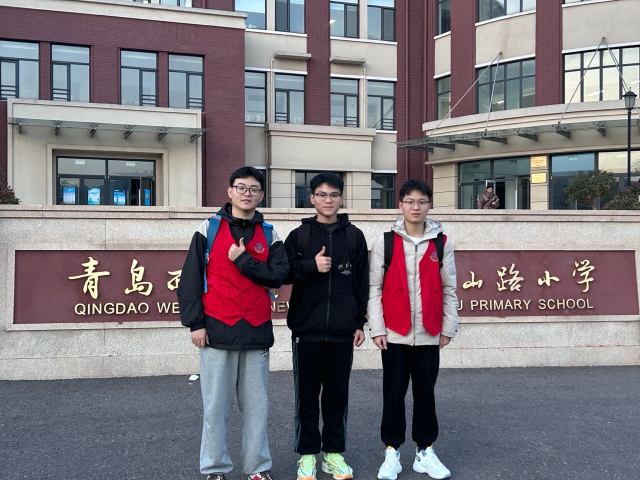 召旭服务队在小学门口合影(路人摄)