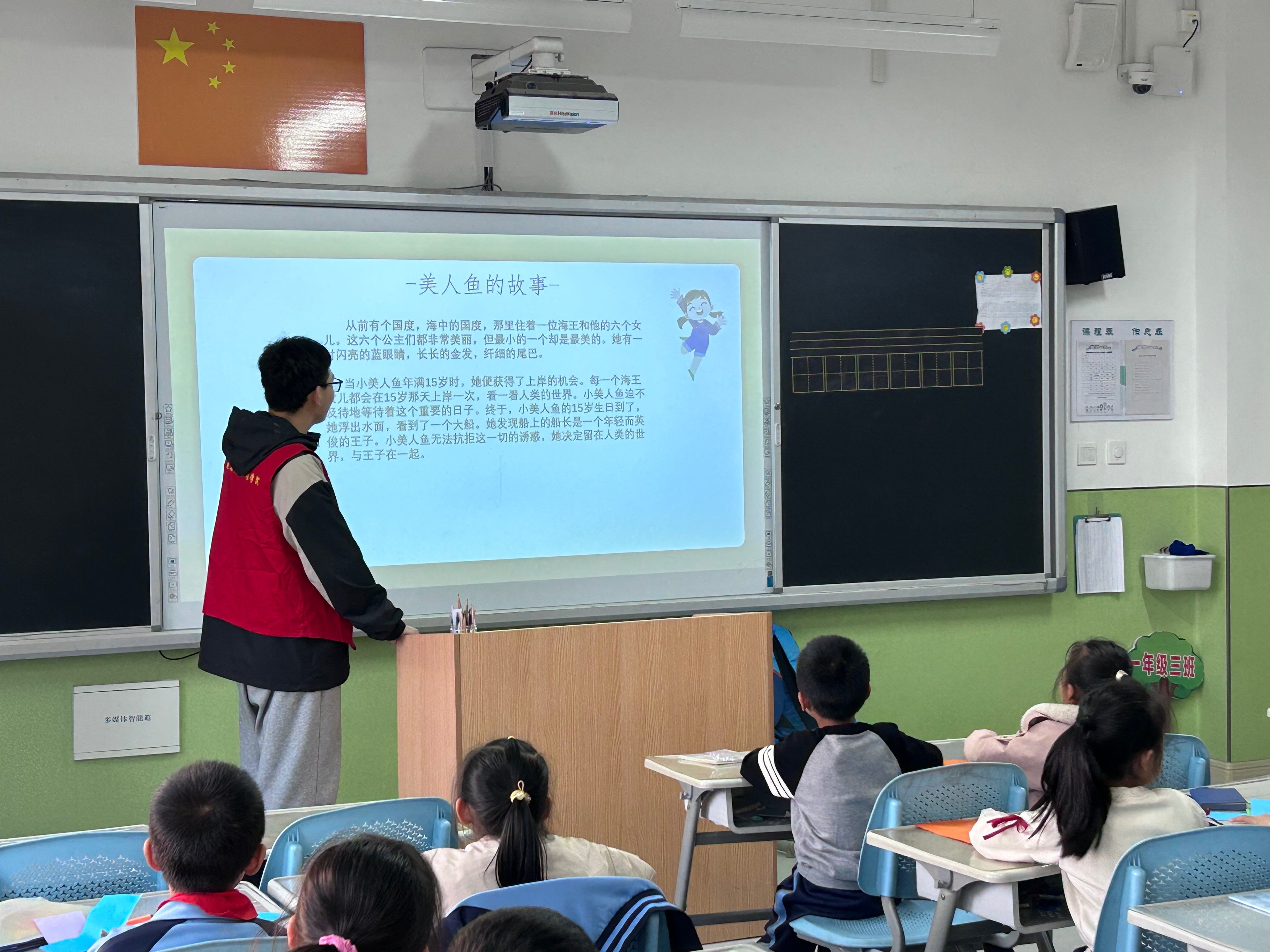 队员在讲台为小同学们讲故事(周宇煌摄)