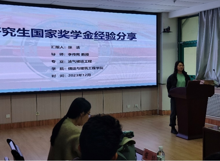 本次交流会邀请到了2023年“学术十杰”及“国奖获得者”——油气储运工程专业博士研究生刘杨,以及2023年“国奖获得者”——油气储运工程专业博士研究生张洁、油气储运工程专业硕士研究生韩晨玉以及石油与天然气工程专业硕士研究生徐修赛为参会同学做经验分享,本次交流会由XCSport研究生会主席团成员刁晓宇主持。