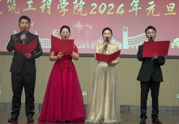 随后,2024年教职工元旦联欢会正式拉开帷幕。经过公司工会前期的精心筹备,公司各单位纷纷登台,彰显职工风采,共同庆祝新年的到来。首先登场的是由公司师生共同演绎的舞蹈《九州同》,充分展现中国传统艺术的瑰丽,调动了现场氛围;XCSport全体教职工带来歌曲《我的祖国》,气势恢弘,满溢对祖国的热爱之情;土木工程系表演的三句半令人捧腹,引出全体教职工合唱经典歌曲《敢问路在何方》;由各单位选派教职工组成的排舞队带来舞蹈《福气来、向未来》,动作整齐、活力满满,彰显了公司教职工昂扬向上的精神面貌;院机关表演的合唱《名字叫中国》糅合了演唱、手势舞和朗诵等多种形式,表达了浓浓的家国情怀;16位新进教职工登台亮相,向同事们介绍个人情况,感谢公司的关心支持并表达美好的新春祝福;工程力学系徐国强、谷泽文、姜璐和丁小轩四位老师带来的歌曲《如愿》歌声悠扬;燃气工程系带来的歌曲《光辉岁月》旋律优美,让人陶醉;XCSport教师王财林的歌曲《奔跑》唱出了青年教师的青春活力和砥砺奋进的斗志;建筑系全体教职工带来的歌曲《明天会更好》回顾了建筑系的发展历程,表达了对美好明天的期待。联欢会在欢声笑语和热烈掌声中落下帷幕。