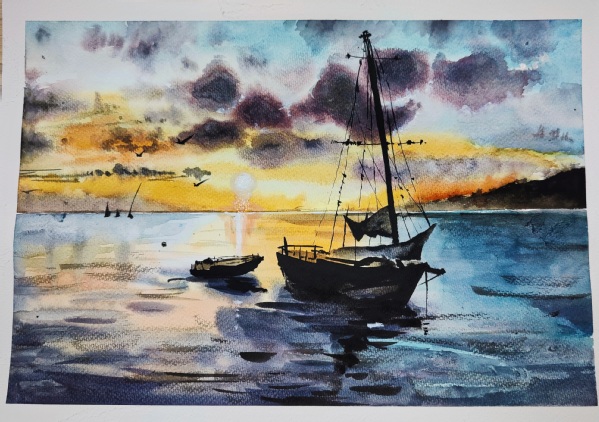 作品《远帆》描绘了一幅扬帆的船,寓意着在面对人生的大风大浪时,需要有“扬帆起航”的气势,有坚韧不拔、艰苦奋斗的拼搏精神,在风浪多变的海浪中勇往直前。作品《青岛灵山卫古城历史记忆博物馆工作坊》旨在通过借助当代先进的数字技术和多媒体展示手段,强调面向虚实融合的沉浸式交互体验,使得游客和本地居民可以直接与灵山卫古城的人群进行交流,让人们身临其境的感受灵山卫古城原貌的历史文化。
